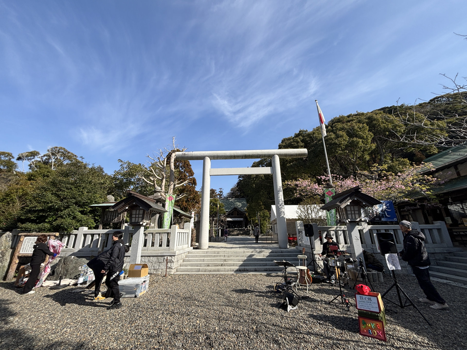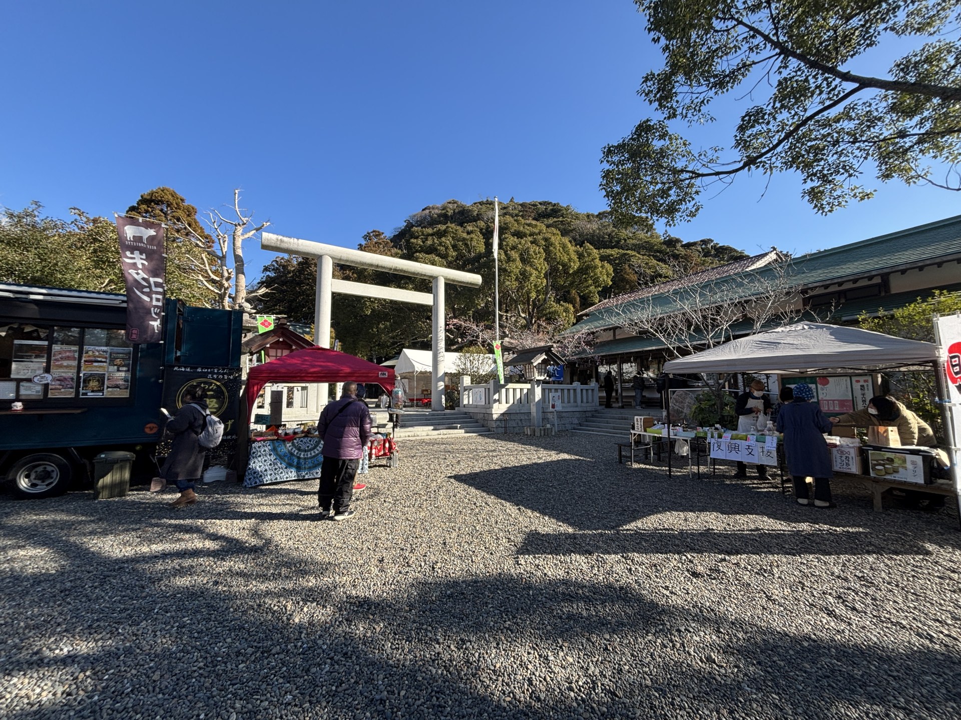 朝7時から朔旦祭。 オルカのアルマ、そして、今田選手も参列。 その後、境内では、良いお天気の下、おついたち市が開催された。 今日は日曜日。 天気も良かったため、普段よりもお店が多く立ち並び、人出も正月を思わせるような多さで、終始、境内は賑わっていた。