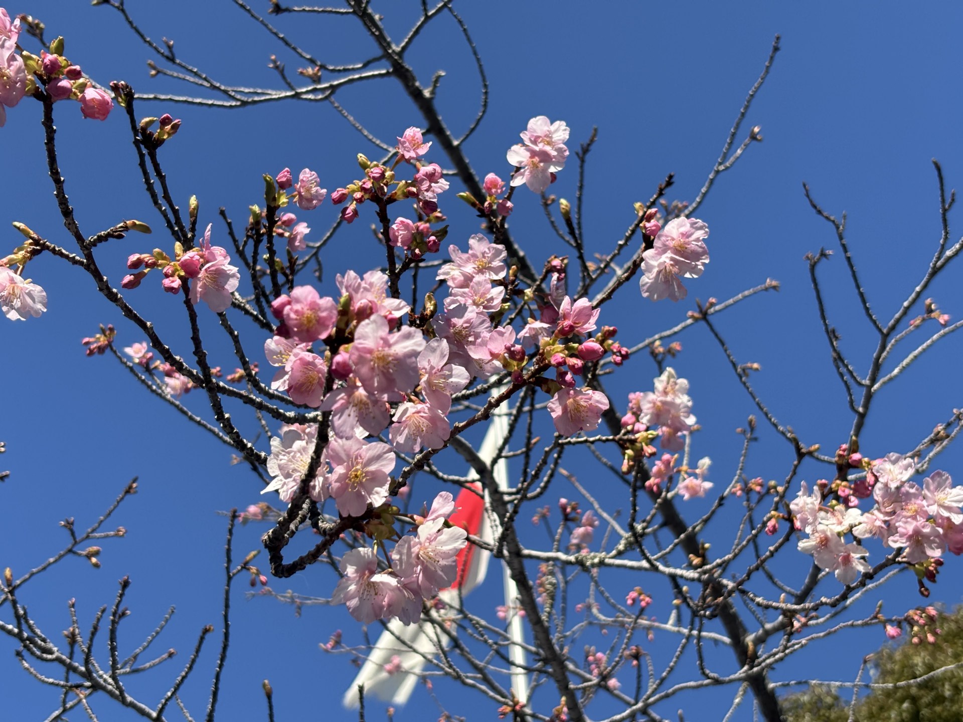 札所前の河津桜もだいぶ開いてきた。 iPhone 15 5.96 mm ISO40 1/1845 sec f/1.6