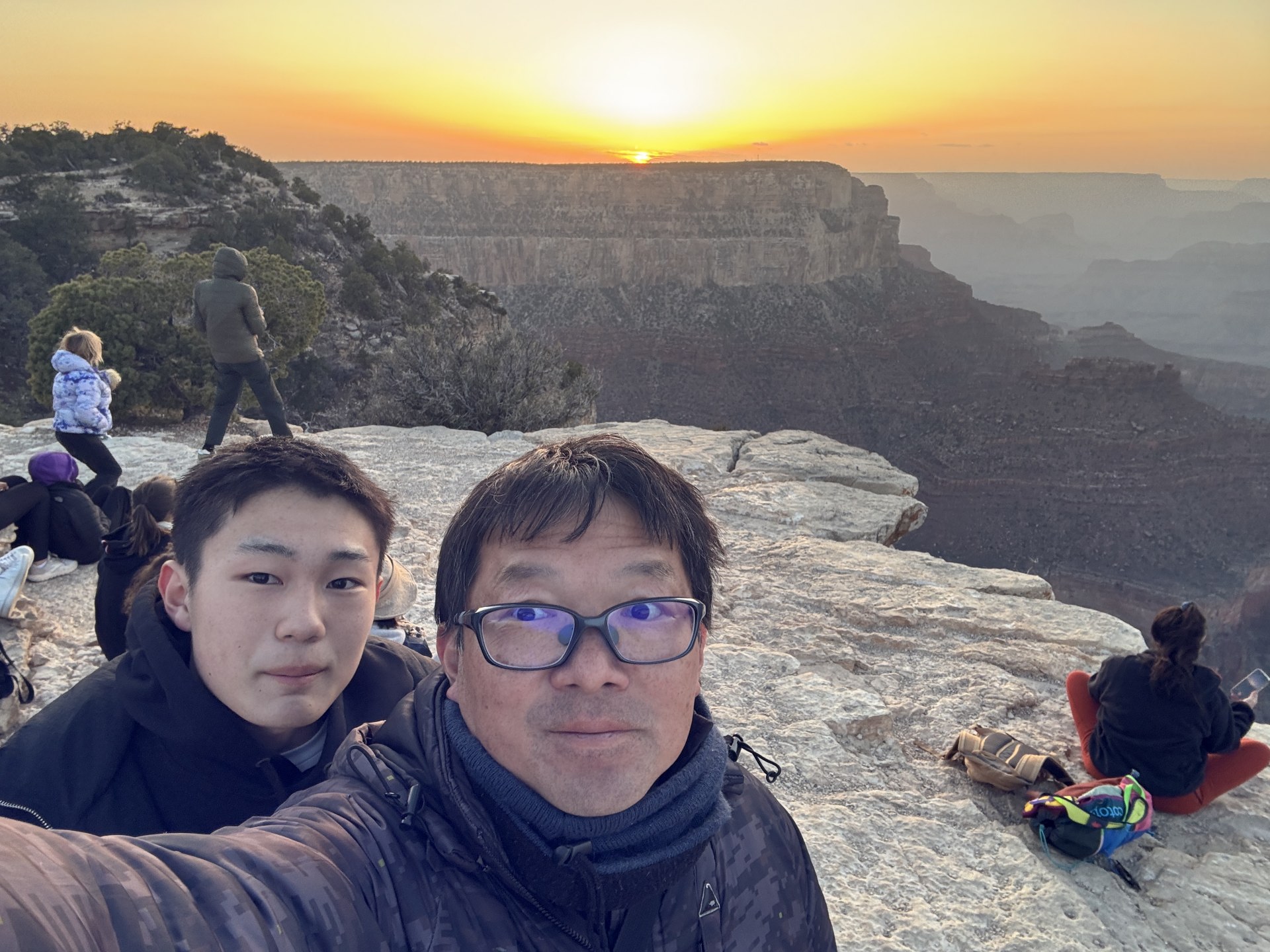 まずは最も有名なビューポイントの一つ、ビジターセンター近くのマーサー・ポイントへ。 続いて、ヤパバイ・ポイントまで30分ほどかけながら、ゆっくりと歩き、さらにそこからロッジ群のあるポイントまで。 気づくと3時間くらい歩いていた。 身体は疲れるけど、それでも、グランドキャニオンの絶景に圧倒されっぱなし。 大自然の偉大さ、人間の存在の小ささを感じる。 日頃の悩みとか、本当に小さなものだと思ってしまう。 正直、写真ではなかなか表現できないし、現地を訪れたからこその、言葉では言い表せない感動がある。 まさに百聞は一見にしかず。 そんなことを二男と話しながら巡った。